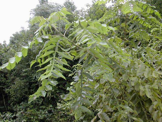 鹽膚木 是漆樹科,鹽膚木屬落葉小喬木或灌木,高可達(dá)10米;小枝棕褐色,葉片多形,卵形或橢圓狀卵形或長(zhǎng)圓形,先端急尖,基部圓形,頂生小葉基部楔形,葉面暗綠色,葉背粉綠色,小葉無(wú)柄。圓錐花序?qū)挻螅喾种?,雌花序較短,密被銹色柔毛;苞片披針形,花白色。